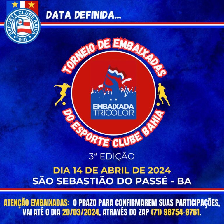 A Terceira Edição do Torneio de Embaixadas do Esporte Clube Bahia, que terá a cidade de São Sebastião do Passé...