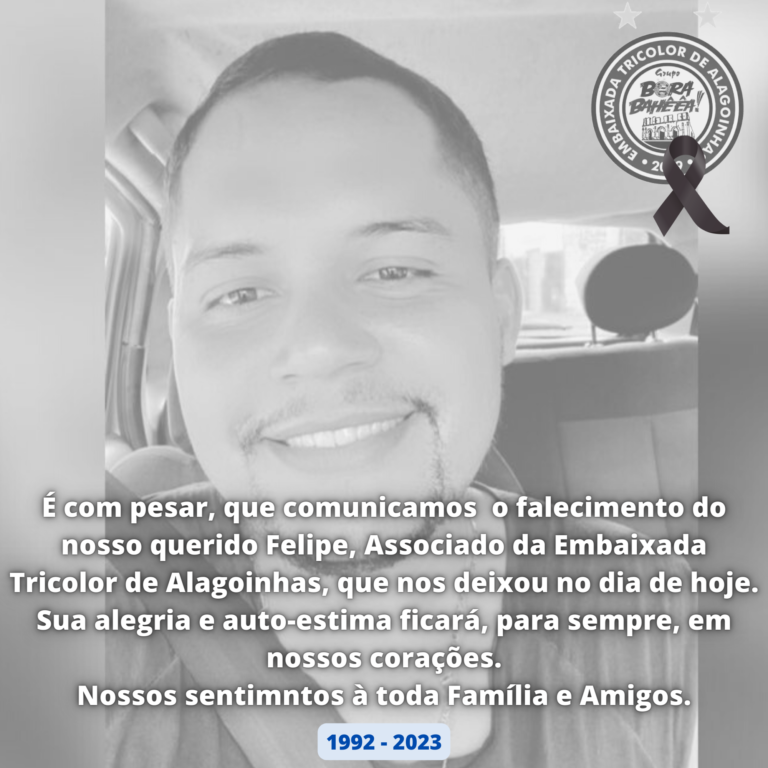 É com muito pesar, que comunicarmos o falecimento do jovem Fellipe Aragão, Associado da Embaixada Tricolor de Alagoinhas, que nos...